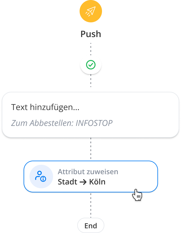 Wenn du zusätzliche Schritte im Flow einfügen möchtest, klicke einfach auf das kleine Pluszeichen unter deiner Nachricht.
