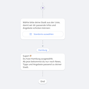 Wählt der Kunde „Hamburg“, bekommt er direkt eine passende Antwort – zum Beispiel Infos und Angebote für Hamburg.