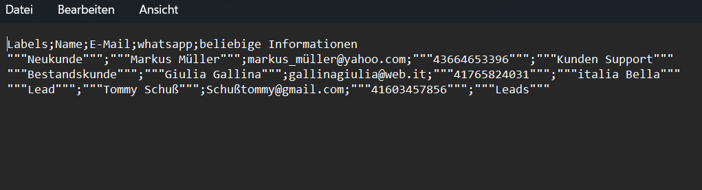 Hier zeigen wir euch, wie Ihr eine fertige Kontaktliste in eine CSV-Datei umwandelt, damit ihr dieses Dokument als Kontaktupload verwenden könnt.