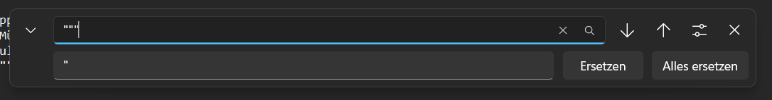 In das obere Fenster tragen wir """ ein. 3x das Anführungszeichen. Und im unteren Fenster tragen wir " ein. Einmal das Anführungszeichen.