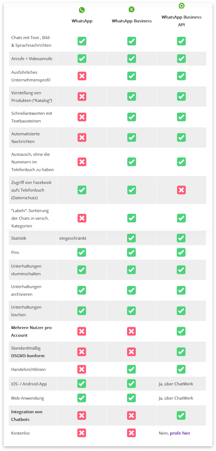 Der Unterschied zwischen WhatsApp, WhatsApp Business und WhatsApp Business API